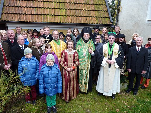 Die Schlosskapelle war 1750 errichtet und gesegnet worden, war aber wie das Schloss selbst im Laufe der Jahrhunderte zahlreichen Besitzer- und Nutzungswechseln ausgesetzt gewesen. Erst in den letzten Jahrzehnten konnte die jetzige Besitzerfamilie das Schloss wieder vorbildlich instand setzen. Die Familie des Hausherrn stammt ursprünglich aus Bosnien (bereits 1180 erwähnt) sowie erhielt 1775 von Kaiserin Maria-Theresia das ungarische Adelsdiplom. Unter den zahlreichen Gästen waren neben den Bürgermeistern der umliegenden Gemeinden und der Stadtkapelle Braunau auch Graf Endre Esterhazy, Andrea Gräfin von Geldern, Stefan Freiherr von Reibnitz, Lothar Freiherr von Chizzola mit Begleitung, Pia Freiin von Geusau und Karl Freiherr von Chizzola.