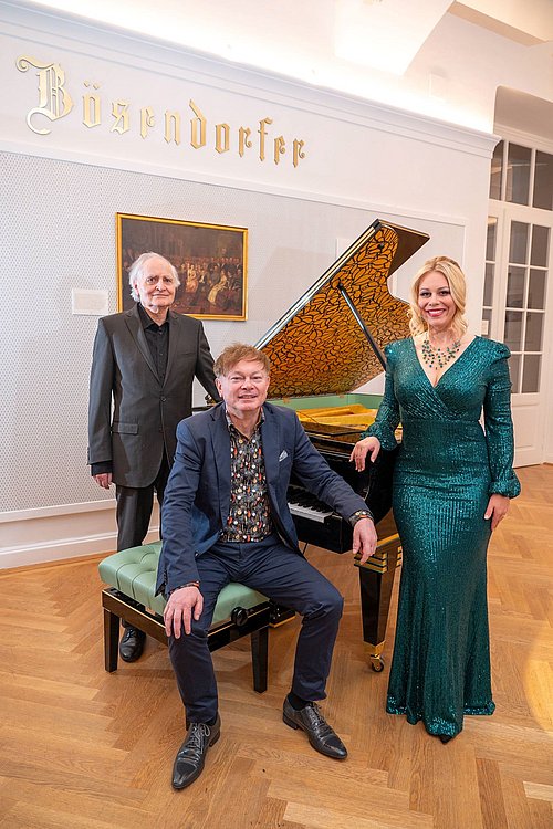 Gemeinsame Termine sind rar, und so wurde vor wenigen Tagen mit den ersten Proben und Abstimmungen für das Konzert zum 125. Geburtstag von George Gershwin mit Starsopranistin Daniela Fally, Pianist Karl Eichinger und der Mährischen Philharmonie unter der Leitung von Dirigent Manfred Mayrhofer im Salon Bösendorfer begonnen. Natürlich wurde auch am Bösendorfer „Secessionsflügel“ im Bösendorfer Salon geprobt