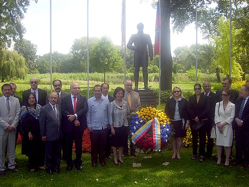 Aus Anlass des Nationalfeiertages der Bolivarischen Republik Venezuela lud der Botschafter, S.E. Jesse Chacón Escamillo am 1. Juli 2016 zu einer Gedenkzeremonie am Denkmal von Simón Bolivar und anschließenden Empfang. Der Nationalfeiertag ist der 5. Juli (Tag der Unabhängigkeit, Día de la Independencia), der Tag, an dem 1811 die Unabhängigkeitserklärung verfasst wurde.