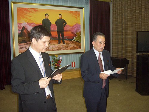 Aus Anlass des 64. Jahrestages der Gründung der Demokratischen Volksrepublik Korea am 9. September 1948 luden der Geschäftsträger a.i., Herr Botschaftsrat Kim Song Chol am 5. September 2012 zusammen mit der bilateralen Gesellschaft Österreich-KDVR zu einem Empfang in die Räumlichkeiten der Botschaft. Im Vorspann zum Empfang wurde den Mitgliedern der Gesellschaft noch ein Film über die weltberühmten Arirang Darbietungen, die alljährlich im Spätsommer in Pjöngjang stattfinden, gezeigt. Arirang ist eine musikalisch unterlegte Massengymnastik und unerhört aufwendiger Artistik, die mit rund 10.000 Mitwirkenden einer monumentalen Theateraufführung gleicht, die mit ständig wechselnden Hintergrundbildern nur in einem Stadion aufgeführt und nur in Korea gesehen werden kann. Zum Empfang selbst waren wieder eine Reihe von Vertretern vornehmlich des multilateralen Bereiches sowie von österreichischen Regierungsstellen gekommen, die über das koreanische Buffet und vor allem der Bar, wo zauberhaft gekleidete Koreanerinnen die Getränke reichten, begeistert waren. Allerdings war auch heuer wieder der Botschafter krankheitshalber abwesend, da er sich zur Behandlung in Pjöngjang befand. Wir wünschen ihm eine baldige Genesung, auf dass er nächstens wieder einmal bei einem Nationalfeiertagsempfang anwesend sein wird.