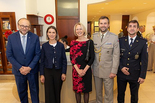 Anlässlich des Nationalfeiertages luden der Botschafter, S.E. Jiri SITLER und die Chargé d’Affaires der Ständigen Vertretung bei der OSZE, der UN und den Internationalen Organisationen, Fr. Lenka SKALICKA am 24. Oktober 2025 zu einem Empfang in die Räumlichkeiten der Tschechischen Botschaft. Die Gäste konnten aufgrund des wunderbaren Wetters den großen Garten mitbenutzen, sodass die zahlreichen Diplomaten und Freunde der Republik noch die letzten Sonnenstrahlen genießen konnten, trotz des Windes!