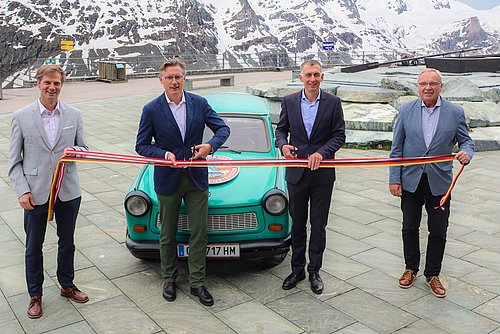 Im Besucherzentrum auf der Kaiser-Franz-Josefs-Höhe können die Gäste eine Reihe von Ausstellungen besuchen. Darunter die höchstgelegene Automobil- und Motorradausstellung der Welt! Teil davon ist die neue Sonderausstellung „Trabi-Ansturm am Großglockner – Reisefreiheit pur anlässlich 30 Jahre Mauerfall“, die gestern gemeinsam mit besonderen Gästen aus Deutschland – darunter Ralf Beste, deutscher Botschafter in Wien, Wolfgang Kießling, Vorstand des Vereins INTER TRAB, Leiter des Trabi-Museums Zwickau und ehemaliger Trabi-Rallye-Fahrer, österreichischen und deutschen Zeitzeugen und natürlich treue Trabis- Fans – eröffnet wurde. Denn als vor 30 Jahren die Mauer fiel und damit die Reisefreiheit kam, machten sich zahlreiche DDR-Bürger in ihren Trabanten und Wartburg auf den Weg nach Österreich. Das Ziel vieler wagemutiger Zweitakter-Piloten: der Großglockner! Und so erzählt die neue Ausstellung die Geschichte und die Geschichten, die sich im Sommer des Jahres 1990 rund um die nicht wirklich bergtauglichen 5.000 Trabis und ihre Insassen auf der Großglockner Hochalpenstraße zugetragen haben.