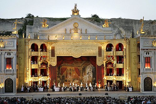 Es ist an sich schon ein Kunststück die über 30 Meter breite Freiluftbühne in St. Margarethen – jüngst mit großem Aufwand generalsaniert und renoviert - zu bespielen. Noch schwieriger wird es, wenn Verdis populäre Oper „La Traviata“, die durchaus zu den intimeren Stücken Verdis zählt, am Programm steht. Regisseur Robert Herzl hat beide Herausforderungen mit Bravour gelöst, indem er das Pariser Opernhaus auf die Bühne brachte und darin eine überaus künstlerische, sehr poetische Inszenierung über das Leben und Sterben der „Kameliendame“ Violetta Valéry erzählte. Herausragend in dieser Rolle Kristiane Kaiser, die mit Leichtigkeit auch die schwierigsten Passagen meisterte und im Piano wie auch in der Koloratur überzeugte. Ebenfalls stimmgewaltig ihr Partner Jean-Francois Borras als Alfredo, der wuchtig in der Dramatik und wunderbar sensibel in der Emotion agierte. Überzeugend auch das gesamte Ensemble - der Chor der Slowakischen Philharmonie und das Ballett trugen das Werk mit der slowakischen Philharmonie unter der Leitung von Ernst Märzendorfer zu neuen Höhen. Das Theater im Theater kam an. Das Publikum wurde sowohl akustisch als auch optisch verwöhnt. Und spätestens als Violetta dramatisch im Lichtermeer ihr Leben ließ, wusste das Publikum: La Traviata ist auch als Freiluftspektakel ein Hit.