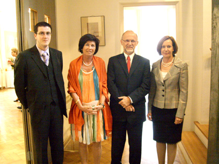 Zum Nationalfeiertag des Großherzogtums luden am 22. Juni 2009 die Botschafterin, I.E. Arlette Conzemius und Herr Thierry Paccoud sowie der Ständige Vertreter bei der OSZE, S.E. Marc Thill und seine Gattin in die Residenz der Botschafterin. Auch guter Ruf verpflichtet und so konnte man bei dieser Einladung eine lange Liste von Missionschefs aufzählen, die alle zur Gratulation gekommen waren. Erfreulich ist auch zu bemerken, dass seit Amtsantritt der charmanten, derzeitigen Botschafterin wieder Leben in die Botschaft einzog und auch Feierlichkeiten wieder so begangen werden wie es sich für ein prominentes Mitglied der EU geziemt. Der einzige Wermutstropfen kam vom Himmel, der ausgerechnet zum Empfangszeitpunkt einen Platzregen schickte und so der hübsche Garten unbenützt bleiben musste. Luxemburg, klein als Land aber groß in seiner Mittlerfunktion und seinem Einfluß in der EU wäre geradezu prädestiniert, den ersten echten EU-Präsidenten zu stellen, konnte man von verschiedensten Ländervertretern hören. Eine weitere Amtsperiode mit einem derart schwachen Präsidenten, wie wir in derzeit haben, könne nämlich nur zu einer Prolongation der derzeitigen Lähmung in Brüssel führen. Man darf hoffen, dass Worte wie diese Realität annehmen und in diesem Zusammenhang dürfen wir diesem Land zu seinem Festtag besonders gratulieren.