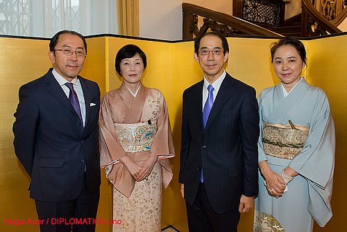 Aus Anlass des Geburtstages Seiner Majestät des Kaisers am 23. Dezember luden der Botschafter, S.E. Kiyoshi Koinuma und seine Gattin Meiko Koinuma sowie der Ständige Vertreter bei den Internationalen Organisationen, S.E. Mitsuru Kitano und seine Gattin Yoshie Kitano am 21. November 2018 zu einen Empfang in die bilaterale Residenz.