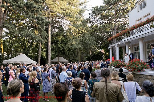 Aus Anlass des „Canada Day“ luden die Botschafterin, I.E. Heidi Alberta Hulan und die Ständige Vertreterin bei der OSZE, I.E. Natasha Cayer am 27. Juni 2019 zu einer Gartenparty in die Residenz. Bei tropischen Temperaturen, jedoch ohne Regengüsse, wie im vergangenen Jahr, feierten die zahlreichen internationalen Gäste ein einem der schönsten Bezirke von Wien.