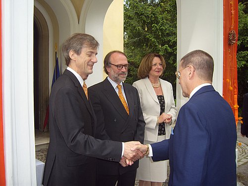 Anlässlich des weltbekannten Königinnentages luden der Botschafter und Ständige Vertreter bei den Vereinigten Nationen in Wien, S.E. Alphons Hammer und seine Gattin sowie der Ständige Vertreter bei der OSZE, S.E. Ron J.P.M. van Dartel und seine Gattin Brigitte am 29. April 2011 zu einem Empfang in den Garten der Residenz. Auch heuer waren in guter Tradition wieder viele Freund Holland’s gekommen und drückten dies auch sehr deutlich durch irgendein Kleidungsstück oder Accessoires in oranger Farbe aus. Zu köstlichen Heringen und duftenden Käse genoss man alle Arten von Getränken und freute sich wieder einmal über das schöne Wetter, wie es unglaublicherweise immer zum Königinnen Tag herrscht. Wie in den letzten Jahren üblich gab Willy’s Caribbean Showband mit Limbo- und Sambarhythmen ihr Bestes und machte damit auch darauf aufmerksam, dass die Niederlande bis heute noch auch in Mittelamerika zuhause sind. Einen Wermutstropfen verursachte die Mitteilung, dass die Kulturabteilung der Botschaft in Wien am Mitte des Jahres geschlossen wird was bei vielen Freunden dieser Institution auf großes Unverständnis stoßen wird. Diese Veranstaltung allerdings war wieder ein großer Erfolg und hat sicher zur Bildung neuer Freundschaften zwischen Österreichern und Niederländern bedeutend beigetragen.