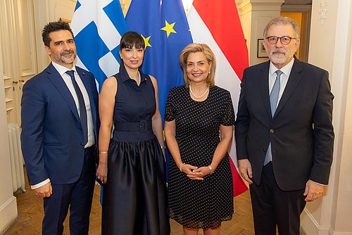 Aus Anlass des Nationalfeiertages von Griechenland luden der Botschafter und Ständige Vertreter bei den Internationalen Organisationen in Wien, S.E. Georgios ILIOPOULOS und seine Gattin Anthoussa DIAKOPOULOU und der Ständige Vertreter bei der OZSE, S.E. Evangelos KALPADAKIS und seine Gattin Chara KARAGIANNIDOU am 18. März 2026 zu einem Empfang in die Räumlichkeiten der Griechischen Botschaft. Die zahlreichen Festgäste ließen es sich nicht nehmen nach den Hymnen und den Reden der beiden Botschafter, die griechische Gastfreundschaft zu genießen.