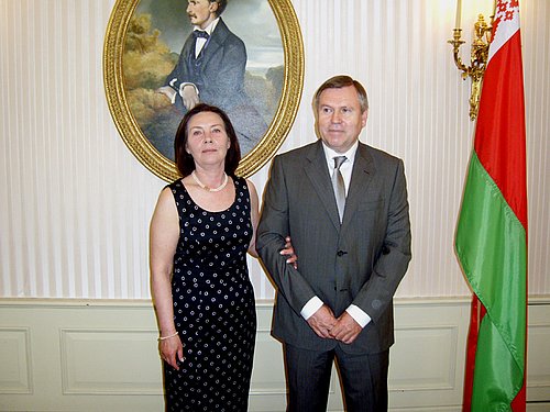 Anlässlich des Nationalfeiertages baten der Botschafter und Ständige Vertreter bei den Internationalen Organisationen sowie Leiter der Delegation bei der OSZE, S.E. Alyaksandr Sychov und seine Gattin Natalia am 5. Juli 2010 zu einem Empfang in die Festsäle des Hotel Radisson Blu. Hier gab es eine große Ansammlung von Geschäftsleuten sowie Mitglieder der beiden internationalen Organisationen und der OSZE, jedoch eine relativ kleine Anzahl an bilateralen Botschaftern. Leider konnten die Gäste keine spezifischen Speisen aus Belarus verkosten, es gab nur internationale Küche, was schade war; zumindestens kulinarisch mehr über das Land zu erfahren. Man sollte vielleicht die Idee vieler vorangegangener Jahre aufgreifen, diese Veranstaltung wieder in der Residenz zu begehen – dort war es einfach authentischer.