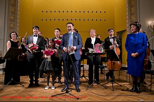 Anlässlich des 28. Jahrestages der Unabhängigkeit luden der Botschafter, S.E. Kairat Sarybay und seine Gattin Dr. Leila Makhat-Sarybay am 29. November 2019 zum Konzert der Reihe „Kasachische Perlen – Klang der Großen Steppe“ in den Schubertsaal des Wiener Konzerthauses ein. Die Einleitung erfolgte mit neuesten Kreationen des „Syrly Saz“ Folkloreorchester und es bot traditionelle Volkskunst auf traditionellen Instrumenten. Im klassischen Konzertprogramm zeigte das Staatliche Kammerorchester der Akademie für Solisten unter der Führung der Chefdirigentin Bakhytzhan Mussakhahayeva mit Werken von W.A. Mozart, Joseph Haydn und Antonio Vivaldi bis zu Gioachino Rosini ihr professionelles Können. Das Publikum, unter ihnen eine große Anzahl der in Wien vertretenen Botschafterkollegen und Missionschefs, war begeistert und dankten den Künstlern mit standing ovations. Für den großartigen Einblick in den Traditionen und derzeitigen Stand der Kultur sei dem Gastgebern herzlicher Dank gesagt und um weitere Kostproben gebeten.