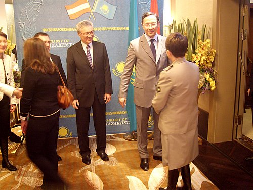 Aus Anlass des Unabhängigkeitstages am 16. Dezember lud der Botschafter und Ständige Vertreter bei den Internationalen Organisationen in Wien, S.E. Kairat Abdrakhmanov am 12. Dezember 2012 zu einem Dinnerbuffet in den Crystal Room des neueröffneten Hotel Ritz Carlton Vienna. In seiner Ansprache würdigte der Missionschef die ausgesprochen guten Beziehungen zu Österreich, die vor einem halben Jahr in einem mehrtägigen Staatsbesuch des Präsidenten von Kasachstan, S.E. Nursultan Nasarbayev in Österreich gipfelten. Im Anschluss erklangen die Hymnen beider Staaten in der jeweiligen Landessprache gesungen – eine Neuerung der letzten Zeit, mit der allerdings Japans Botschafter den Anfang machte. Interessant ist, dass in diesem Jahr die Empfänge zu Nationalfeiertagen immer mehr für eine touristische Präsentation genützt werden, um Lust auf einen Besuch des jeweils anderen Landes zu machen. Auch diesmal geschah dies ebenso, wobei die Anwesenheit der Mitglieder der neugegründeten bilateralen Gesellschaft „Österreich-Kasachstan" deutlich zu dieser Werbung beitrug. Allerdings weiß die Allgemeinheit hier in Österreich noch immer viel zu wenig über dieses riesige Steppenland in Asien und es wird Zeit, nach 20jähriger Selbständigkeit diese Lücke zu schließen. Ein Anfang mit der Gesellschaft wäre gemacht.
