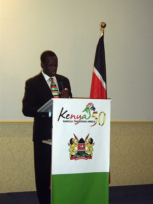 Vor 50 Jahren, am 12. Dezember 1963 erhielt das Land seine Unabhängigkeit; dies galt es heute zu feiern. Aus diesem Grund luden der erst vor kurzen neu in Wien eingetroffene Botschafter, S.E. Michael A. Oyugi und seine Gattin Diana am 11. Dezember 2013 im Festsaal des Hotel Intercontinental zu Buffetempfang. Kenia, eines der nach demokratischen Grundsätzen am weitesten fortgeschrittenen Land Ostafrikas besitzt weltweit höchste Anerkennung und ist schon seit Jahrzehnten eine der beliebtesten Urlaubsregionen für stressgeplagte Europäer am afrikanischen Kontinent. All dies drückte sich auch in der Teilnahme vieler Missionschefs des in Wien ansässigen diplomatischen Corps aus wiewohl afrikanische und asiatische Botschafter die Mehrzahl bildeten. Bemerkenswert auch die vielen anwesenden Manager was eine weitere Steigerung der wirtschaftlichen Kontakte zwischen beiden Ländern verspricht. Nach der Begrüßungsansprache des Botschafters intonierte die anwesende Kapelle die beiden Hymnen und verschönte den weiteren Ablauf durch wohltuendes musikalisches Allerlei. Im Laufe der Veranstaltung entwickelte sich das Ganze dann immer zu einem fröhlichen Fest der Lebensfreude wozu wir dem Botschafterehepaar und ihren Mitarbeitern herzlich gratulieren dürfen.