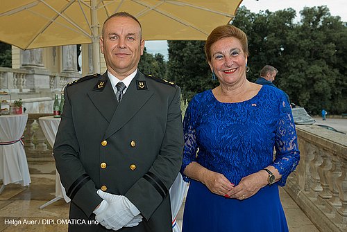 Um den 5. Jahrestag des EU-Beitritts der Republik Kroatien, den Nationalfeiertag am 25. Juni und den Tag der Streitkräfte würdevoll zu begehen luden die Botschafterin, I.E. Dr. Vesna Cvjetkovic und der Verteidigungsattaché, Oberst Davor Kopanji am 26. Juni 2018 zu einen Empfang in das Café Gloriette in Schönbrunn ein. Nach einer herzlichen Begrüßungsansprache der Botschafterin und wunderschön gesungenen Hymnen durch eine kroatische Künstlerin, gab es den üblichen Sturm auf das kroatische Buffet und viel entspannter Stimmung bei den herrlichen Ausblick auf das westliche Wien. ein selten gelungener Veranstaltungsort für einen Nationalfeiertagsempfang – Gratulation Kroatien.
