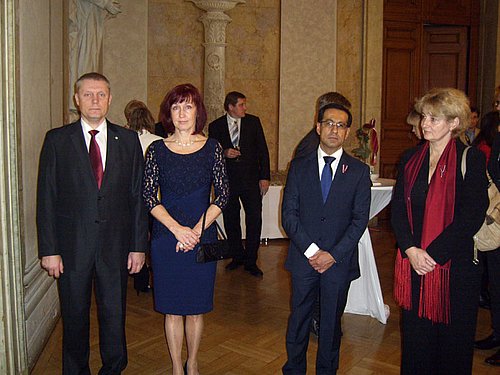 Anlässlich des 95. Jahrestages der Staatsgründung 1918 und des damit verbundenen Unabhängigkeitstages am 18. November luden der Botschafter, S.E. Edgars Skuja und der Ständige Vertreter bei den Internationalen Organisationen in Wien sowie der OSZE, S.E. Bahtijors Hasans am 19. November 2013 zu einem Konzert und einen anschließenden Empfang in den großen Festsaal der Technischen Universität Wien. In seiner Ansprache, die von den beiden Hymnen umrahmt wurde, erwähnte der Botschafter, dass man in den letzten Jahren so erfolgreich wurde, dass es nun ermöglicht wird ab 2014 den Beitritt zur Eurozone zu wagen. Auch die Ernennung von Riga zu einer der Kulturhauptstädte Europas 2014 wäre für sein Land eine große Ehre. Das Konzert, welches von Violine Konzertmeister des Lettischen Symphonieorchesters Raimonds Ozols sowie der Violinistin des gleichnamigen Orchesters Daina Birzniece und dem bekannten Komponisten und Musikproduzenten Raimonds Macats am Klavier gegeben wurde, umfasste Musikstücke die unterschiedlicher hätten nicht sein können. Vom „melancholischen Walzer bis zum Csardas" waren viele Musikrichtungen vertreten, die mit unglaublichen Können und perfekter Synchronität das Publikum zu Beifallstürmen hinrissen. Man darf sich in diesem Zusammenhang fragen, wie viele ungehobenen, kulturelle Schätze dieses Land auch in Zukunft noch zu bieten hat und gleichzeitig hoffen, dass Botschafter Skuja uns noch viele solche Überraschungen in Zukunft bieten wird. Ein herzliches Dankeschön für diesen herausragenden Kulturgenuss an die Gastgeber und die Interpreten – und auf ein Wiedersehen dieser Künstler in Wien.