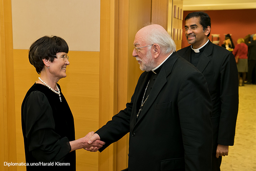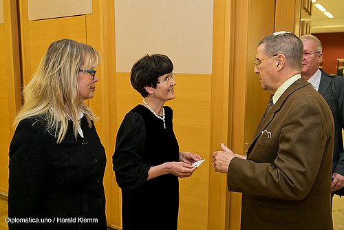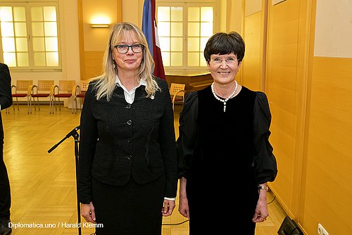 Anlässlich des 99. Jahrestages der Ausrufung der Republik Lettland am 18. November 1918 lud die Botschafterin, I.E. Mag. Veronika Erte am 16. November 2017 zu einem Empfang in den Festsaal der Diplomatischen Akademie. Nach dem Abspielen der beiden Hymnen hielt die neue Botschafterin ihre Begrüßungsansprache bei der sie betonte wie gut die Kulturkontakte zwischen beiden Ländern seien und dass sie trachten werde, diese Beziehungen bis zum 100. Jahrestag noch erheblich zu steigern. Dannach konnte man entspannt das dargebotene Buffet aufsuchen, das sich äußerst geschmackvoll zusammengestellt, darbot. Erfreulicherweise gab es auch österreichischen Hochriegl-Sekt, was sonst eher selten vorkommt und ein slowensiches Catering Team namens „Embassy“, welches sich durch Freundlichkeit besonders auszeichnete und unter www.embassycatering.eu jederzeit erreichbar ist.