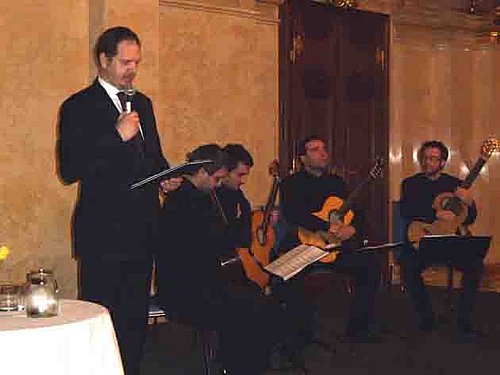Aus Anlass des Unabhängigkeitstages der Republik Litauen und der Millenniumsfeier luden der Botschafter, S.E. Giedrius Puodziunas und der Ständige Vertreter bei den Internationalen Organisationen, S.E. Renatas Norkus am 17. Februar 2009 zu einem Konzert des Baltischen Gitarren-Quartetts und anschließenden Empfang in die Festräume des Palais Niederösterreich. Nach den Begrüßungsworten des Botschafters gab es als besondere Einlage die Ehrung des Kammersängers Prof. Harald Serafin. Dem Geehrten wurde der Orden für die Verdienste um Litauen überreicht, wofür sich Prof. Serafin in seiner altbewährten, charmanten Art bedankte. Im Anschluss folgte das Konzert des Baltischen Gitarren-Quartetts, dass zu den bedeutendsten Gitarrenensembles in Litauen zählt. Ihre Ausbildung absolvierten die drei litauischen Gitarristen Saulius S. Lipcius, Sergej Krinicin, Zigmas Cepulenas an der Musik- und Theaterakademie in Vilnius. Seit 2008 gehört auch der belgische Komponist und Gitarrenvirtuose Chris Ruebens dieser Gruppe an. Wir dürfen uns recht herzlich für die Einladung bedanken und freuen uns schon jetzt auf eine nächste Musikveranstaltung dieses am Musiksektor noch recht unbekannten baltischen Staates.