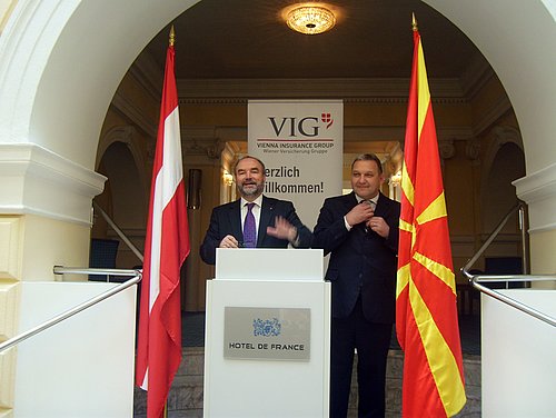 Anlässlich des neuen Nationalfeiertages am 8. September luden der Botschafter, S.E. Prof. Dr. Gjorgji Filipov und der Ständige Vertreter bei den Internationalen Organisationen in Wien, S.E. Mag. Zoran Dabik am 6. September 2013 zu einem Empfang in das Atrium des Hotel de France. Sehr zur Freude der Gastgeber war dieser Empfang sehr hochrangig besetzt, selbst Missionschefs von Ländern des UN Sicherheitsrates waren zugegen. Dies lässt darauf schließen, dass man in der Weltgemeinschaft die Republik Mazedonien entsprechend schätzt und man die leidlichen Namenstreitigkeiten mit Griechenland nicht länger goutieren will. Ein Land das sich nicht einmal selbst erhalten kann sollte zumindestens im Umgang mit seinen Nachbarn diplomatisch klüger sein; jedenfalls scheint eine Lösung, möglicherweise auch einseitig, in Sichtweite. Nach einer humorvollen Ansprache des Botschafters war die Bahn für Buffet und Small Talks freigegeben und von den zahlreichen Gästen lebhaft genützt. Der Veranstaltungsort war mit dem Hotel de France zweifellos gut gewählt, er erscheint jedoch für Länder mit großem Gästeandrang nicht geeignet. Die Redaktion dankt für die nette Einladung und wünscht für das nächste Jahr viel wirtschaftlichen und politischen Erfolg wie z.B. eine weitere EU-Annäherung.