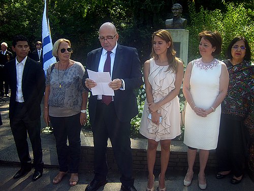 Anlässlich des 191. Jahrestages der Unabhängigkeit Uruguays luden der Botschafter, S.E. Bruno Javier Farone Machado und seine Gattin Cristina Prieto de Faraone am 25. August 2016 zu einem Festakt vor dem Denkmal des Nationalhelden General José G. Artigas im Donaupark und einem anschließenden Empfang in das bei den Südamerikanern bereits bekannten Restaurant „Spoons“. Trotz der Sommerhitze waren zahlreiche Gäste aus der Diplomatie anwesend und gratulierten dem Botschafter zu diesem Festtag.