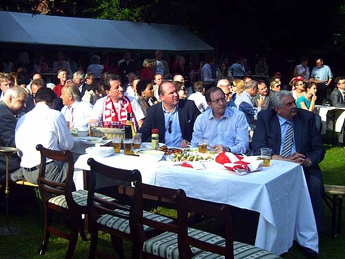 Anlässlich des Großereignisses der Eröffnung der Fußballeuropameisterschaft in Polen, luden der Botschafter der Republik Polen, S.E. Dr. Jerzy Marganski und der Botschafter der Ukraine, S.E. Andrii Bereznyi zum einem Gartenfest in die Botschaft der Republik Polen. Die Eröffnungszeremonie und das Eröffnungsspiel Polen vs. Griechenland wurde am 8. Juni 2012 bei herrlichem Wetter im Garten der Botschaft auf einer Großbildleinwand übertragen und faszinierte alle anwesenden Diplomaten. Die Bewirtung der Gäste war hervorragend und dafür gebührt den Botschaftsmitarbeitern ein großes „Danke schön". Wir haben den Abend bei Freunden in der Polnischen Botschaft wirklich genossen und dürfen nochmals für die hervorragende Organisation und Gastfreundschaft danken.