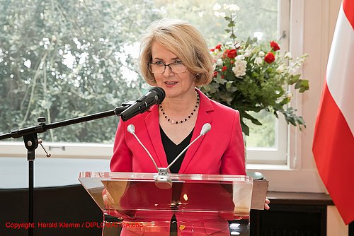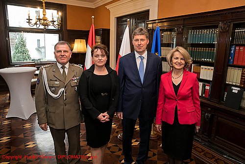 Aus Anlass des Nationalfeiertages, der Verfassung vom 3. Mai 1791 und der 15jährigen Mitgliedschaft Polens in der EU luden die Botschafterin, I.E. Mag. Jolanta Róza Koslowska und der Ständige Vertreter bei den Internationalen Organisationen in Wien, S.E. Mag. Adam Bugajski am 14. Mai 2019 zu einem Empfang in die Festräume und den prachtvollen Garten der Botschaft.