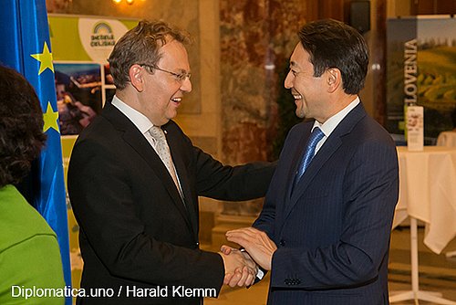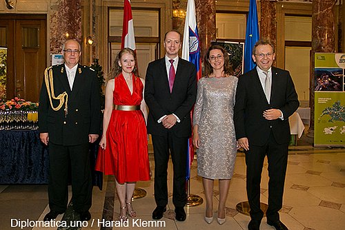 Anlässlich des Nationalfeiertages luden die Botschafter, S.E. Dr. Andrej Rahten und der Ständige Vertreter bei den Internationalen Organisationen in Wien, S.E. Andrej Benedejcic am 22. Juni 2017 in das Haus der Industrie am Schwarzenbergplatz. Die herrlichen Festräume dieses Palais eignen sich hervorragend für solche Feste. Die Hymnen von Österreich und Slowenien wurden von einem Quartett zur Aufführung gebracht und in den darauffolgenden Reden der Botschafter wurde kurz auf die Beziehungen der Länder eingegangen und da Botschafter Rahten seine Mission in Wien beenden wird, war dies auch sein letzter Nationalfeiertagsempfang hier in Wien. Anschließend lud man die Gäste zur Verkostung slowenischer Spezialitäten und österreichischer Weine. Wir danken für diese gelungenen Abend und wünschen dem scheidenden Botschafter noch viel Erfolg in der Zukunft.