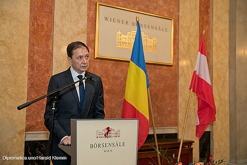 Am Empfang nahmen neben vielen Wirtschaftsfachleuten und diverser Kulturgrößen auch die Botschafter diverser Nachbarländer und aus der Europäischen Union teil. Auch viele Mitglieder des großen rumänischen Kulturinstituts und der ansehnlichen rumänischen Community in Wien waren vollständig vertreten, was das ohnehin großzügige Fassungsvermögen der Börsensäle etwas in Bedrängnis brachte; eine Trennung könnte sich als attraktiv für alle erweisen. Dank sei dem Gastgeber für das überaus üppige und abwechslungsreiche Buffet, auch das Getränkeangebot ließ die gute Qualität der rumänischen Rot- und Weißweine erneut glänzen. Alles in allem eine erfolgreiche, gelungene Präsentation einer Nation, deren 100. Jahrestag 2018 nur schwer zu toppen sein wird.