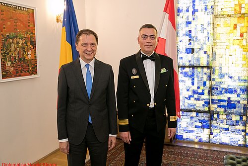 Aus Anlass des Tages der Armee luden der Botschafter S.E. Bogdan Mazuru und der Militärattaché Oberst Iulian Soare am 23. Oktober 2019 zu einem sehr gut besuchten Empfang in die Räumlichkeiten der Botschaft. Nach Ansprachen in denen nicht nur die guten Beziehungen im Allgemeinen gelobt wurden sondern auch die gute Zusammenarbeit der Militärs gewürdigt wurden, lud man zu einem hervorragenden rumänischen Buffet und ausgezeichnete österreichische Weine, womit die Basis für den Small Talk bestens aufbereitet wurde. Neben den Fragen über die zukünftige Regierung in Österreich waren der Brexit und Syrien die wichtigsten Themen, die man zwar an diesem Abend nicht lösen konnte, aber man konnte sich eine eigene Meinung aus den vielen Gehörten bilden.