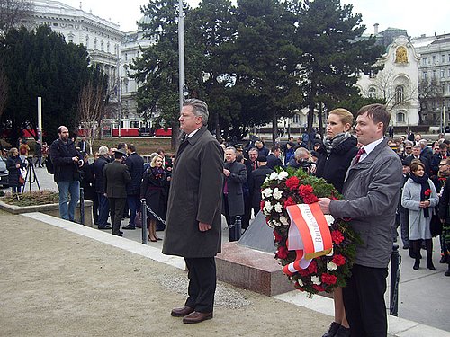 Am Tag der Vaterlandsverteidiger am 23. Februar luden der Botschafter, S.E. Dimitry Lyubinskiy, der Ständige Vertreter bei den Internationalen Organisationen in Wien, S.E. Vladimir Voronkov und der Ständige Vertreter bei der OSZE, S.E. Alexander Lukashevitch zu Kranzniederlegungen an den Grabstätten der gefallenen Soldaten der Roten Armee am Wiener Zentralfriedhof sowie am Denkmal der für die Befreiung Wiens gefallenen sowjetischen Soldaten am Schwarzenbergplatz ein. Im Anschluss baten die drei Botschafter zum Empfang in die bilaterale Botschaft in die Reisnerstraße. Auffallend bei diesem Empfang waren die starke Präsenz ausländischer Militärattachés und hochrangige Mitglieder des österreichischen Bundesheeres.