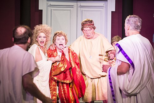 Nun bereits zum neunten Mal produzieren wir ein neues Dinnerspektakel, doch ist in dieser Saison nicht nur das kulinarisch wie räumlich exotische römische Ambiente neu: Auch die literarische Vorlage der berühmten beiden "Claudius"-Romane von Robert Ranke-Graves, die unter "normalen" Theaterbedingungen kaum aufführbar erscheint, lässt sich durch die außergewöhnliche Form des Abschiedsbanketts auf originelle Weise erstmals verwirklichen. Römische Köstlichkeiten inklusive!