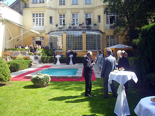Anlässlich des Nationalfeiertages am 1. September luden der Botschafter, S.E. Juraj Machác und die Botschafterin und Ständige Vertreterin bei den Internationalen Organisationen in Wien, I.E. Olga Algayerová am 5. September 2013 zu einem Empfang in Form eines Gartenfestes in die bilaterale Residenz. Neben Grillstationen und Wein- oder Bierlabestellen wurde dieser Empfang aber von zwei kulturellen Höhepunkten begleitet; die musikalische Umrahmung der ganzen Veranstaltung und auch die Ansprachen der Botschafter bewältigte die „Marián Cekovsky Band", eine einzigartige Erscheinung in der slowakischen Popszene. Der Frontmann gleichen Namens wurde 2011 bester Sänger des Jahres und ist auch als Komponist, Komiker und Moderator bekannt. Erfreulicherweise kam die Band besonders gut zur Geltung, weil sie vom Balkon des zweiten Stockes aus intonierte, was auch der Rede des Botschafters zugute kam, die noch nie so deutlich zu hören und zu sehen war wie diesmal. Ein Dankeschön für diesen guten Einfall! Weiters gab es eine kleine Modeschau des Modelabels „Richard Rozbora Couture", die vom gleichnamigen Modedesigner gestaltet und von Models am Catwalk rund um den Swimmingpool präsentiert wurden. Dabei zeigte man seine Kollektionen bei der Londoner Fashion Week und der Summer Fashion Show in Paris. Großer Erfolg bei den Gästen und ein Bravo für die guten Ideen und die dadurch aufgelockerte Stimmung bei diesem heurigen Empfang; ein Dankeschön an die Gastgeber.