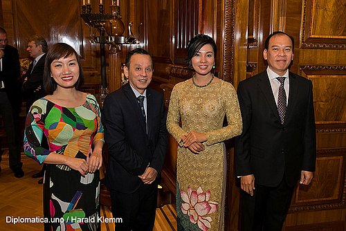 Aus Anlass des 72. Nationalfeiertages luden der Botschafter, S.E. Viet Anh VU und seine Gattin am 12. September 2017 in die Festräumlichkeiten des Park Hyatt Vienna. Nach den Hymnen und der sehr eindrucksvollen Rede des Botschafters in der er die besonders guten Beziehungen mit Österreich und den großartigen wirtschaftlichen Aufschwung seines Landes hervorhob, lud man zu einem vietnamesischen Buffet. Ganz besonders die scharf gewürzten Suppen waren gefragte Produkte an diesem Abend, aber auch die anderen Köstlichkeiten waren nicht zu verachten. Wir dürfen dem Botschafter für diesen schönen Abend nochmals recht herzlich Danke sagen.