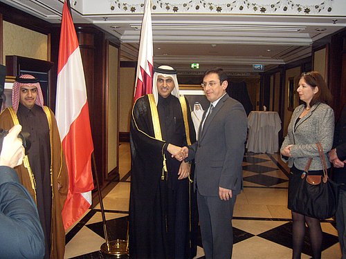 Aus Anlass des Jahrestages der Thronbesteigung von Sheikh Jassim Bin Mohammed Bin Thani, dem Gründer des Staates Katar und Herrscher über dieses Land und gleichzeitigen Nationalfeiertag luden der Botschafter und Ständige Vertreter bei den Internationalen Organisationen in Wien, S.E. Ali Al-Mansouri und seine Gattin am 10. Dezember 2014 zu einem Buffet-Empfang in den Festsaal des Hotel Intercontinental. Es ist sehr erfreulich, dass sich die Botschaft heuer entschlossen hat, dieses wichtige Ereignis im Kreise aller befreundeten Missionschefs und Freunde von Katar zu feiern, spielt doch Katar mittlerweile auf dem diplomatischen Parkett und in der gegenwärtigen Weltpolitik eine immer wichtigere, wenn auch nicht immer ganz durchsichtige, Rolle. Jedenfalls ist der Staatsgründer ein häufiger und gern gesehener Gast hier in Österreich und so freute es uns besonders, dass eine so opulente Veranstaltung von Katar präsentiert wurde. Ein Wunsch sei diesem glanzvollen Feste noch hinzuzufügen: Katar und seine Diplomatie möge alles in ihrer Macht stehende unternehmen um dem Morden im Nahen Osten Einhalt zu gebieten; an Einfluss fehlt es diesem Land sicher nicht und es könnte sich damit einen Platz in den zukünftigen Geschichtsbüchern sichern.