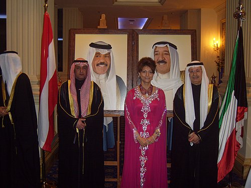 Anlässlich des 52. Jahrestages der Unabhängigkeit und zum 22. Jahrestag der Befreiung von der Invasion durch den Irak lud der Botschafter, S.E. Mohammad Saed Al-Sallal und seine Gattin am 26. Februar 2013 zu einem Empfang in den Festsaal des Grand Hotel Wien. Dazu war dieser Festsaal mit Tischen und Stühlen im arabischen Stil hinreißend geschmückt, die zum Plaudern oder der Erholung einluden oder aber um sich die am großzügigen Buffet angebotenen Speisen trefflichst munden zu lassen. Viele Botschafter befreundeter Länder waren persönlich gekommen u.a. der Botschafter der U.S.A. S.E. William Carlton EACHO III und der Apostolische Nuntius, Erzbischof Dr. Peter Stephan Zurbriggen. Aber auch Wirtschaftsmanager und Vertreter der Touristikbranche waren zugegen, ist doch Kuwait immer mehr an einem verstärkten Aufkommen des Tourismus interessiert. Für die anwesenden Damen gab es eine eigene Ecke für Süßigkeiten und Kaffee die regen Zuspruch fand und wo man auch so manche Neuigkeit in Erfahrung bringen konnte. Zusammen genommen eine sehr abwechslungsreiche Einladung, die ähnliche Ereignisse positiv überbot und ein erfreuliches Bild der Entwicklung dieses Landes zeichnete. Wir danken für die Einladung und den guten Eindruck, den wir mitgenommen haben.