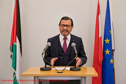 Anlässlich des Nationalfeiertages und des „UN-International Day of Solidarity with the Palestinian People“ lud der Botschafter und Ständige Beobachter bei der UN und den Internationalen Organisationen in Wien, S.E. Salah Abdel Shafi am 5. Dezember 2019 zu einem Empfang in die Festräume der Diplomatischen Akademie. Bei der gut besuchten Veranstaltung wiederholte der Botschafter in seiner Ansprache, dass eine Zwei-Staaten-Lösung derzeit von den Aktivitäten Israels boykottiert wird und auch die USA offensichtlich nicht wirklich an eine solche Lösung glaubte.