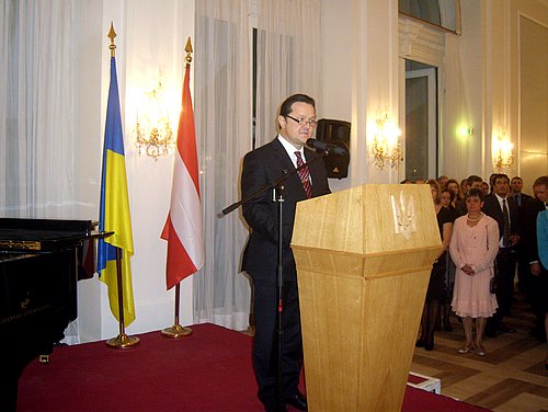 Anlässlich des Unabhängigkeitstages luden der Botschafter der Ukraine, S.E. Andrij Bereznyi und der Ständige Vertreter bei den Internationalen Organisationen in Wien, S.E. Ihor Prokopchuk am 19. September 2013 zu einem Empfang in den Kursalon Wien. Nach der Darbietung der ukrainischen und österreichischen Hymne hielten die beiden Botschafter kurze Ansprachen und betonten die guten Beziehungen zum Gastland Österreich. Danach folgten ukrainische Musikstücke, die von hervorragenden Künstlern des Landes präsentierten. Für jene Gäste, die die unhöflich genug waren ihr Kommunikationsbedürfnis während der Musikpräsentation zu befriedigen sei gesagt: die Sänger waren hervorragend und die Musik berührte das Herz. Anschließend bot das Buffet alles was der Gaumen begehrte und der für diesen Anlass extra bereitgestellte Wodka aus der Ukraine fand reißenden Absatz. Wir dürfen uns nochmals recht herzlich bedanken und wünschen dem Land weiterhin viel Erfolg und einen baldigen Kooperationsvertrag mit der Europäischen Union.