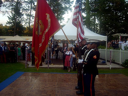Anlässlich des 240. Jahrestages der Unabhängigkeit der Vereinigten Staaten von Amerika am 4. Juli luden die Botschafter, I.E. Alexa L. Wesner und Blaine F. Wesner, der Stv.-Ständige Vertreter bei den Internationalen Organisationen in Wien, S.E. Henry S. Ensher und Mona Ensher sowie der Ständige Vertreter bei der OSZE, S.E. Daniel B. Baer und Dr. Brian J. Walsh am 29. Juni 2016 zu einer Tri-Mission Garden Party. Eine wunderbare Idee, da ja gerade die Botschafter der Vereinigten Staaten von Amerika mehr Freunde als Platz haben, überlegten sich die Gastgeber schon vor Jahren, wie die Einladung zum Unabhängigkeitstag so harmonisch und angenehm als möglich für die Gäste gestaltet werden könnte. Und so findet der Empfang in drei Gruppen statt, wobei in jeder Gruppe die Nationalhymen von Österreich und den U.S.A. gespielt, die Nationalfarben präsentiert werden und alle drei Botschafter Ihre Begrüßungsansprachen halten. Die Bewirtung der Gäste ist trotz der großen Zahl hervorragend organisiert und es wurden typische amerikanische Spezialitäten geboten, Bier und hervorragenden Weine rundeten das kulinarische Angebot ab.