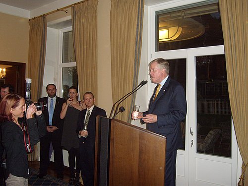 Zu einer Vorstellung der Ausstellung „Kunst in Botschaften" luden am 4. Oktober 2010, S.E. William C. Eacho III und seine charmante Gattin in die Räumlichkeiten ihrer Residenz. Diese Ausstellung gibt einen guten Vergleich über die amerikanische Malerei und ihre unterschiedlichen Maler. Die gezeigten Werke stammten von Wolf Kahn, Georg Edwin Chaplin, Milton Avery, seiner Tochter March Avery Cavanaugh und ihres Sohnes Sean Cavanaugh; diese fünf Künstler repräsentierten die große künstlerische Vielfalt auch innerhalb von Familien. Der Botschafter berichtete z.B. dass ihm besonders die Bilder von Milton Averay ans Herz gewachsen waren als er zum 18. Geburtstag von seinem Vater einen Averay als Geschenk bekam. Diese Art Ausstellungen werden überall auf der Welt in Botschaften gezeigt, damit man mit diesem speziellen Programm, dass reiche, kulturelle Erbe der U.S.A. mit seinen Freunden teilen kann. Im Anschluss an diese Ausstellung wurde zu einem Cocktail mit intensiven Kulturgesprächen gebeten.