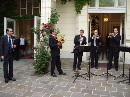 Aus Anlass des Geburtstages Ihrer Majestät Königin Elisabeth II. luden der Botschafter und Ständige Vertreter bei den Vereinten Nationen, S.E. Simon Smith und Frau Sian Stickings sowie der Ständige Vertreter bei der OSZE, S.E. Ian Cliff und seine Gattin am 16. Juni 2009 zu einer Garden Party in ihre Botschaftsresidenz. Abgesehen von den erfreulich hohen Sicherheitsvorkehrungen, die am Eingang stattfanden lief die Party in einer angenehm, zwanglosen Atmosphäre ab. Zwischen einer interessanten Verkostung von britischem Käse und alten englischen Whiskysorten wurde neuester Klatsch verbreitet oder empfangen oder man zog sich mit Champagner zu vertraulichen Gesprächen unter Blumen und Gartensträuchern zurück. Trotz der heuer widrigen Wetterlage hatten die Veranstalter auch noch echtes Glück, den bis auf wenige Tropfen regnete es während der Partydauer nicht. Man kann auch heuer wieder von einer gelungenen und stilvollen Einladung sprechen, was leider in vergangenen Jahren nicht immer der Fall war. Besonders zu erwähnen gilt es noch die ausgezeichnete Militärmusikkapelle, der eigentlichen Stimmungsmacherin dieses Vorsommerabends. Eine würdige Veranstaltung für eine beliebte Königin.