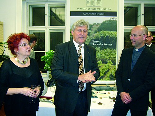 Als Gegenstück zum bereits traditionellen Frühlingsempfang lud die Anwaltssocietät Sattlegger Dorninger Steiner & Partner und die Direktorin der SPC, Kommerzialrätin Jeannette Monadjemi am 4. November 2010 zur Segnung des „Jungen Kamptaler Grünen Veltlinger" in ihre Räumlichkeiten am Opernring. Die zahlreich erschienen Gäste feierten die Weintaufe gemeinsam mit dem Dompfarrer Mag. Anton Faber, der die Segnung des Weines mit launigen Worten vollzog. Anschließend lud man zu einem köstlichen Heurigenbuffet und verkostete neben dem gesegneten Grünen Veltliner noch zahlreiche andere Sorten Weine. Für diesen Abend waren die Büroräumlichkeiten in ein herbstliches Heurigenambiente verwandelt und so blieben die Gäste auch fast alle länger als geplant.