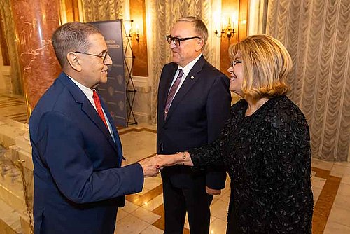 Zu einem Weihnachtskonzert luden der Botschafter S.E. Dimitrii Livbinskii und seine Gattin Elena Livbinskaia am 15. Dezember 2023 in die Botschaft der Russischen Föderation. Die Musiker des Moskauer Musiktheaters „Helikom-Opera“ präsentierten Weihnachtslieder, mit viel Herz und Gefühl, wobei die Protagonisten Dimitrij Tschernow (Bariton), Sofia Zygankowa (Sopranistin) und ganz besonders der Klavierspieler und Konzertmeister Wladimir Rodionow, ihr bestes gaben. Viele der befreundeten Botschafter ließen es sich nicht nehmen an dieser Veranstaltung teilzunehmen und so wurde auch dieses Konzert wieder ein großartiger Erfolg. – Weitere Fotos finden Sie unter www.diplomatica.uno