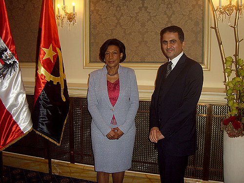Anlässlich des Nationalfeiertages und des 40. Jahrestages der Unabhängigkeit am 11. November 1975 lud die Botschafterin und Ständige Vertreterin bei den Internationalen Organisationen in Wien, I.E. Maria de Jesus Ferreira am 11. November 2015 zu einem Empfang in den Ballsaal des Vienna Grand Hotel. Nach dem Abspielen der beiden Hymnen hielt die Botschafterin ihre Begrüßungsansprache wobei sie besonders auf die wirtschaftlichen Belange ihres Landes zu sprechen kam. - Der Name Angola leitete sich von dem Titel Ngola der Könige von Ndong, einem östlich von Luanda gelegener Vasallenstaat ab; die Region um Luanda erhielt diesen Namen im 16. Jahrhundert, als die ersten portugiesischen Seefahrer landeten. Im 19. Jahrhundert erfolgte die Kolonialisierung des damals noch nicht umgrenzten Territoriums durch Portugal. - Dieser Empfang zeichnete sich durch einen sehr guten Besuch der in Wien ansässigen ausländischen Diplomaten wie auch unzähliger in- und ausländischer Wirtschaftsfachleute aus, die allesamt die landschaftliche Schönheit dieses Landes lobten. Um die kulinarischen Gaumenfreuden noch weiter zu steigern, bot man auch ein musikalisches Programm dreier Spitzentenöre, die eigens für diese Veranstaltung aus Luanda eingeflogen wurden. Im ersten Teil des Programms gab es Mozart und Donizetti sowie Angolan Classic zu hören, der zweite Teil war eine Abwechslung von Operette und Oper, wobei die drei Tenöre den europäischen Vorbildern um nichts nachstanden. Großartig diese Musikeinlage, für die wir herzlichst Dank sagen.