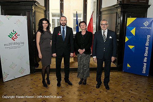Aus Anlass der Unabhängigkeit von Bulgarien am 3. März 1878 luden der Botschafter, S.E. Ivan Sirakov und seine Gattin, sowie der Ständige Vertreter bei den Internationalen Organisationen in Wien, S.E. Svetoslav Spassov und Gemahlin am 6. März 2018 zu einen Empfang in den Festsaal ihrer Botschaft.