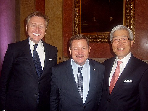 Nach dem offiziellen Teil bat man zum Dinner, das aus vielen köstlichen koreanischen kalten und warmen Speisen bestand und das die Gäste mit großem Genuss einnahmen. Auch an Getränken aller Art mangelte es nicht und wie so oft bei gutem Essen kam auch der Small Talk nicht zu kurz, wobei besonders der Präsident der koreanischen Gesellschaft, Abg. Z. Nationalrat Werner Amon besonders umlagert war, ist er doch kurz zuvor erst zum neuen ÖVP-Generalsekretär gewählt worden. Zur Gesamtveranstaltung darf bemerkt werden, dass sie zwar sehr stilvoll ablief, die sonst aber so beliebte koreanische Musik oder Gesangseinlagen schmerzlich vermisst wurden. Man kann sich eben Korea ohne Musik kaum vorstellen, in dieser Hinsicht gibt es mit Österreich eine Seelenverwandtschaft.