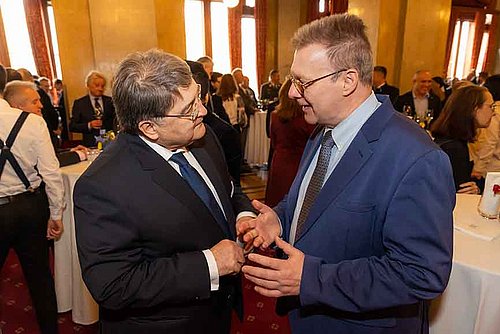 Aus Anlass des Nationalfeiertages von Rumänien luden der Botschafter, S.E. Emil Hurezeanu und der Ständige Vertreter bei den Internationalen Organisationen in Wien, S.E. Stelian Stoian am 27. November 2023 zu einem gut besuchten Empfang in die Wiener Börsensäle. Das musikalische Rahmenprogramm bestritten das Orchester und der Chor der Nationaloper aus Bukarest. Bereits einen Tag vorher konnte man die künstlerische Leistung im MuTh (Konzertsaal und Bühne der Wiener Sängerknaben am Augartenspitz) bewundern. In der Rede des Botschafters durfte natürlich der Seitenhieb auf den Österreichischen Bundeskanzler wegen dem noch immer aufrechten Schengen-Vetos nicht fehlen. - Weitere Fotos finden Sie unter www.diplomatica.uno