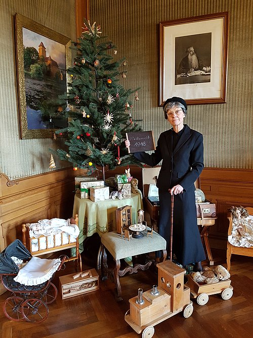 Der letzte Teil der Aufführung findet in der Bibliothek im Sitzen bei einem Glas Sekt und Jourgebäck statt.
