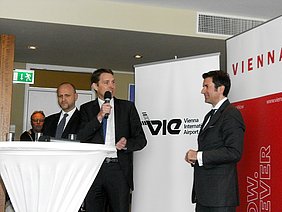 Seit 7. April 2017 startet Volotea neu vom Flughafen Wien: Die spanische Fluglinie verbindet mit den französischen Städten Nantes und Marseille. Genua, die italienische Hafenstadt wird seit 8. April 2017 ebenfalls neu von Volotea angeflogen. Im Rahmen eines Pressetermins eröffneten Pierfrancesco Carino, Chief Sales Officer von Volotea, Norbert Kettner, Geschäftsführer von Wien Tourismus und Mag. Nikolaus Gretzmacher, Senior Vice President Operations der Flughafen Wien AG die neuen Flugverbindungen